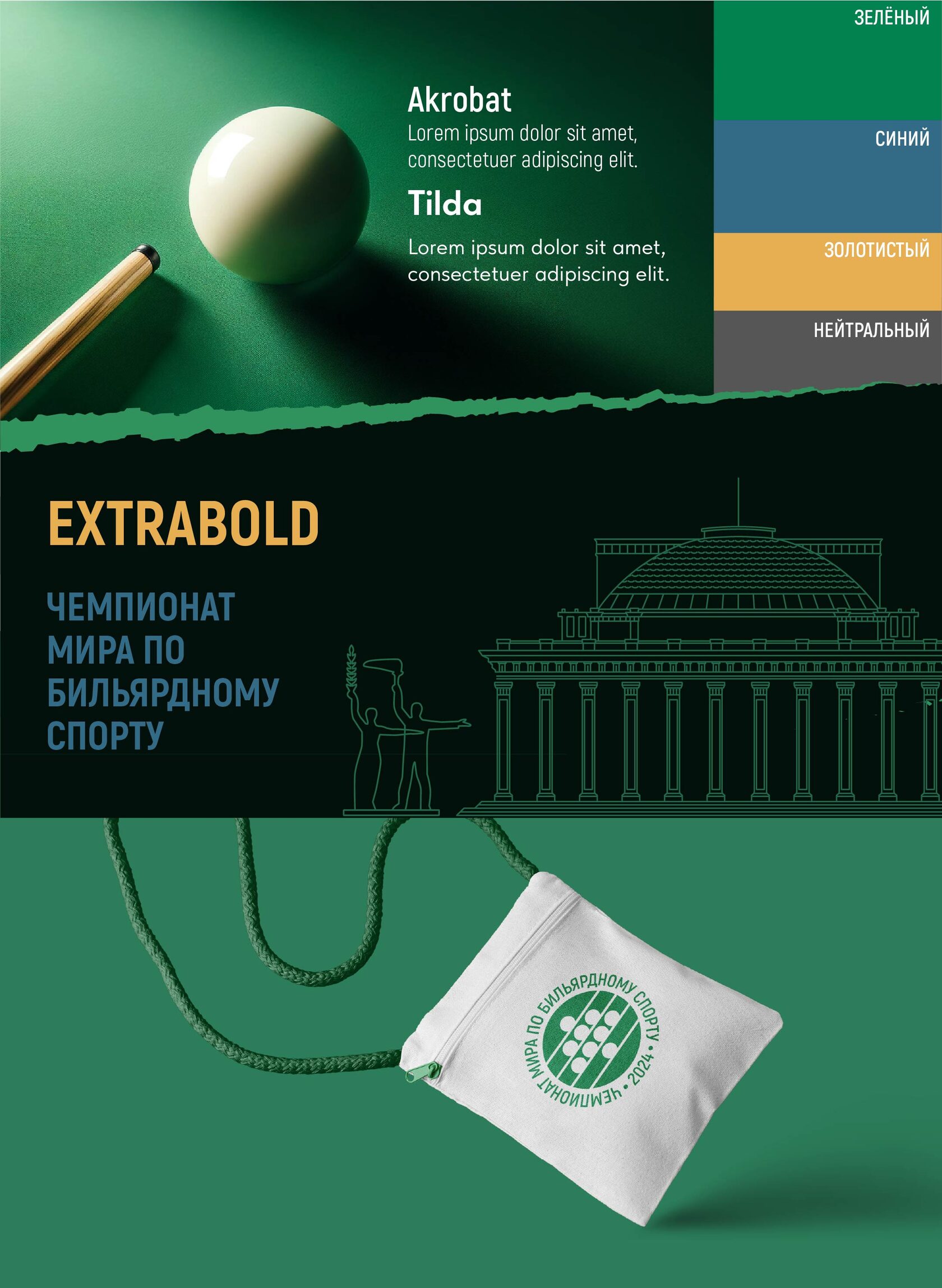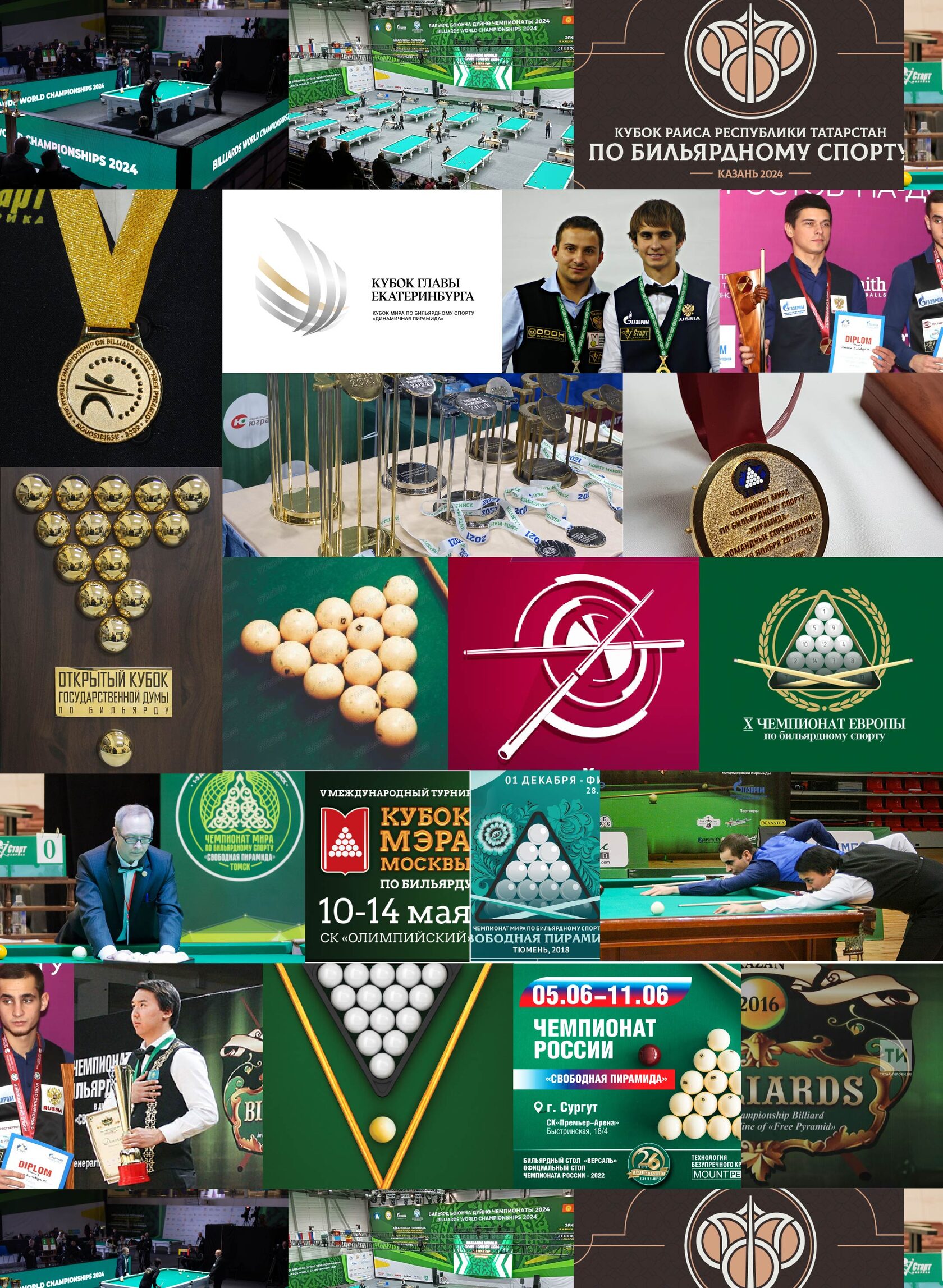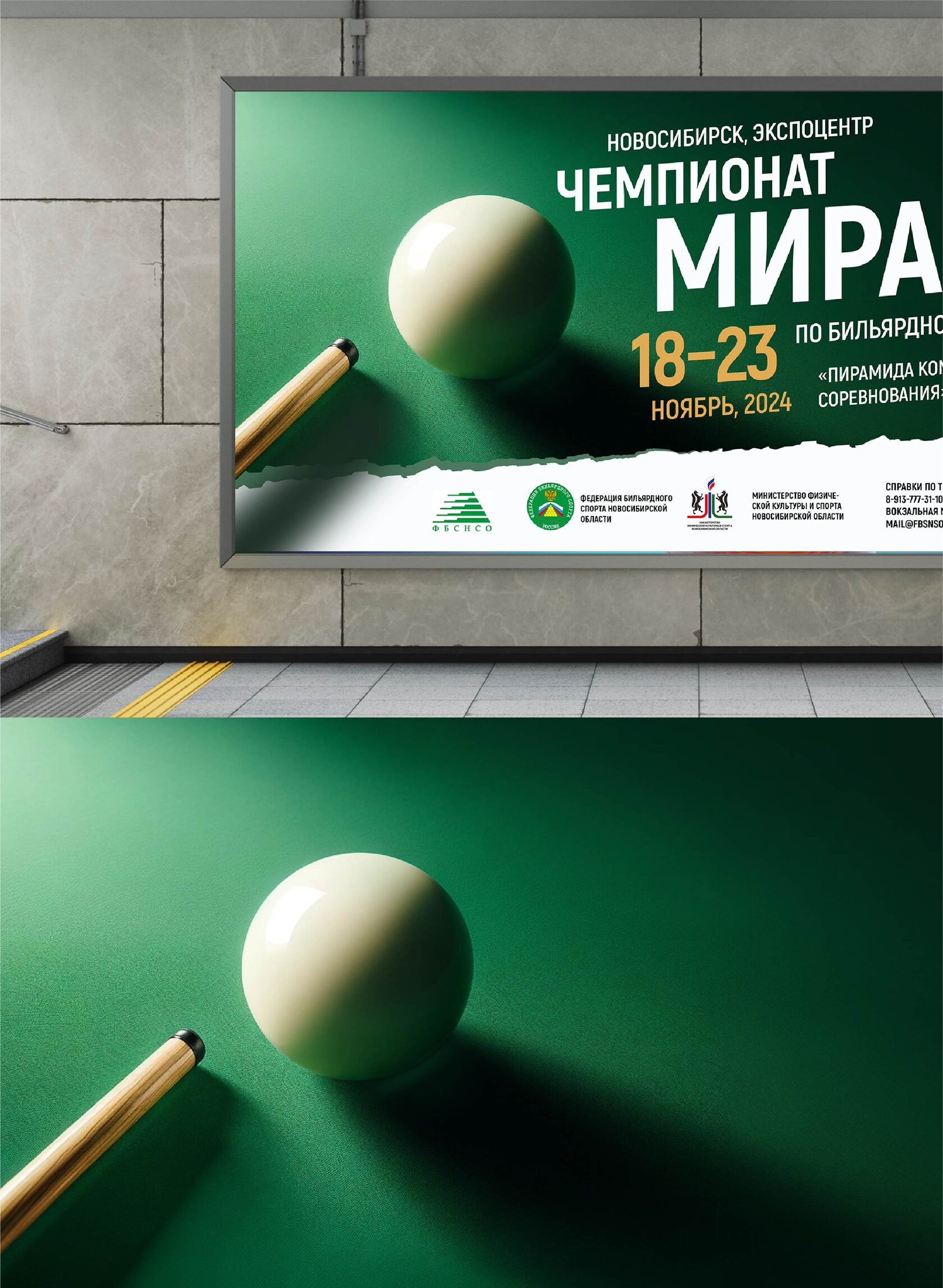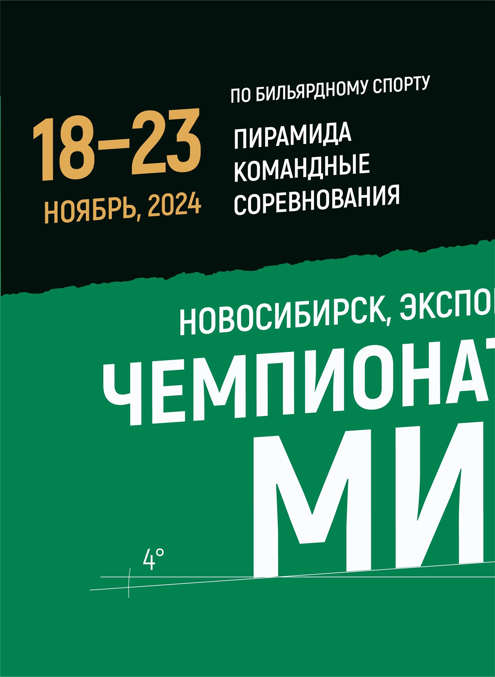 Вверху на обложке раздела — главное изображение (key visual) чемпионата по бильярдному спорту в уникальном настроении: бильярдный шар и фрагмент бильярдного кия.
